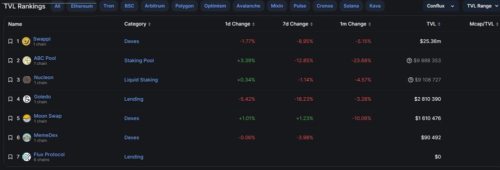 V tabulce výše si můžete rychle všimnout, že je Nucleon druhým největším držitelem likvidity, tedy TVL z celého ekosystému Conflux. Proč? Jednoduše z toho důvodu, že je Nucleon prozatím jediným zdejším LSD (liquid staking derivative) protokolem.