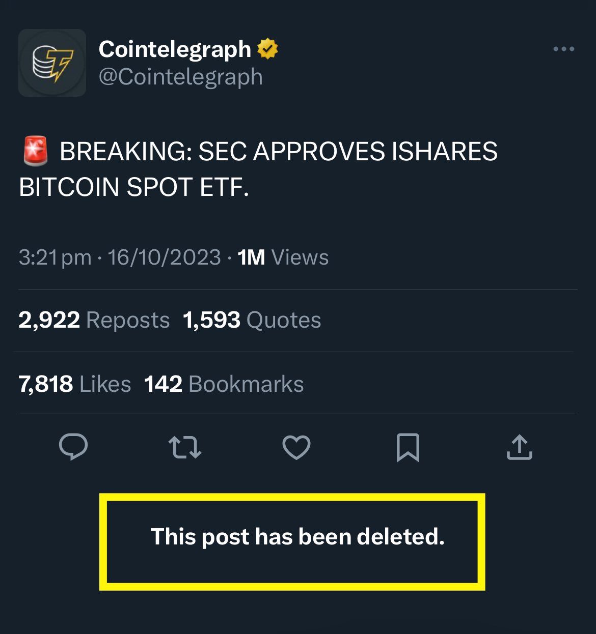 Cointelegraph, známý krypto magazín ze záhadného důvodu znenadání vydal následující Tweet: