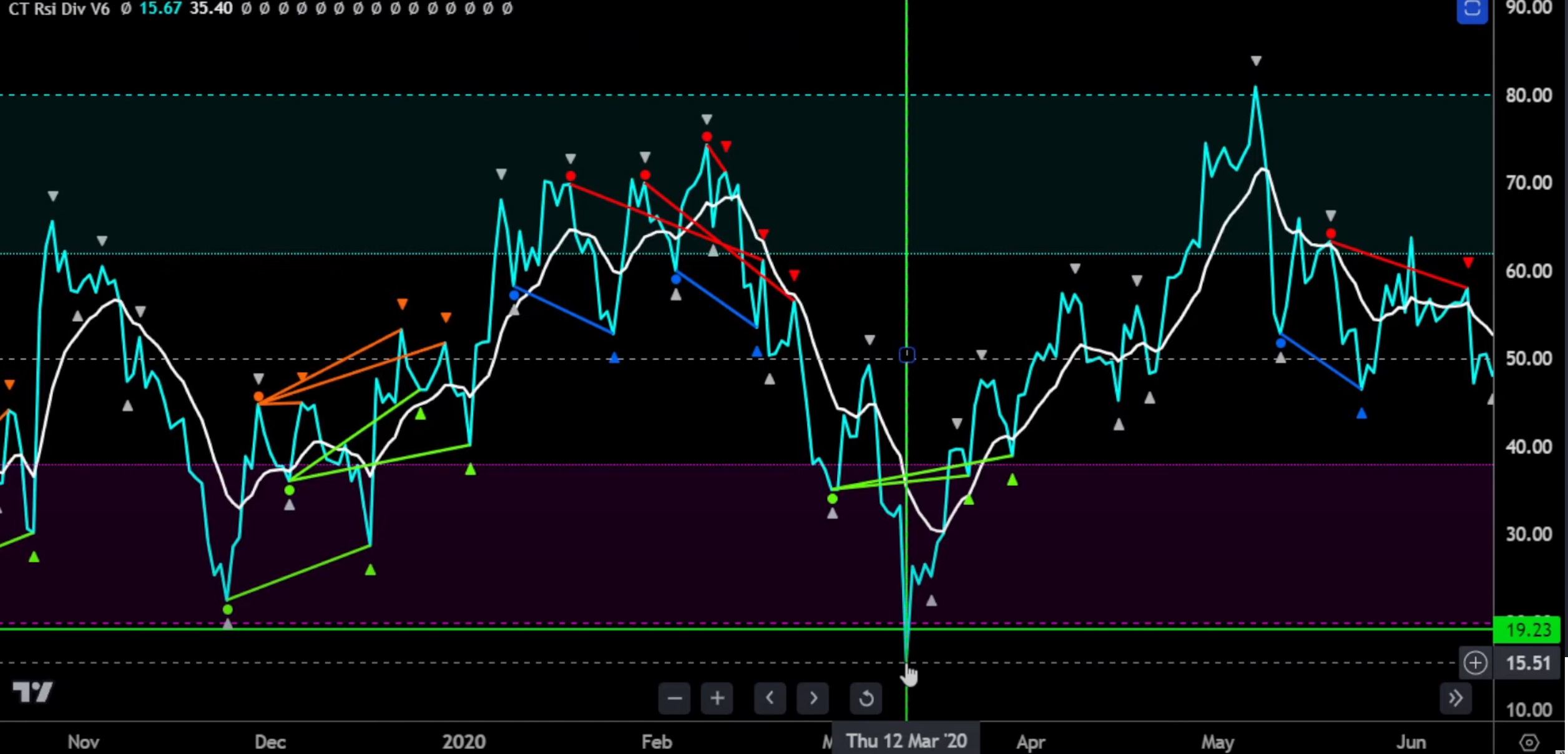 „Kdy jsme RSI na této hodnotě viděli naposledy? Čtvrtek, 12. března 2020: COVID dump. Označeno jasné dno, před začátkem bull runu.“