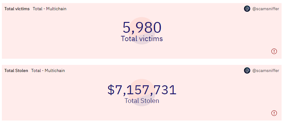 V posledních týdnech se ve spojení s kryptoměnovými podvody často objevoval scammerský nástroj Inferno Drainer. Ten je zodpovědný za řadu krádeží kryptoměn od nepozorných uživatelů prostřednictvím podvodných stránek kopírujících oficiální web projektu. Před pár týdny dokonce vývojáři tohoto softwaru nabídli své služby veřejnosti a rozhodli se za peníze poskytovat hotové řešení okrádající uživatele. Kdokoliv si tak mohl za podíl z loupeže spustit vlastní podvodnou webovku a pokusit se vykrást cizí peněženky. Ve spojení s velkou poptávkou po nejrůznějších meme coinech se Inferno Drainer stal nejnebezpečnějším podvodem posledních měsíců. Informace o počtu obětí nebo ukradených kryptoměnách můžete sledovat v analytickém nástroji Dune, ve kterém tato data publikuje služba Scam Sniffer.